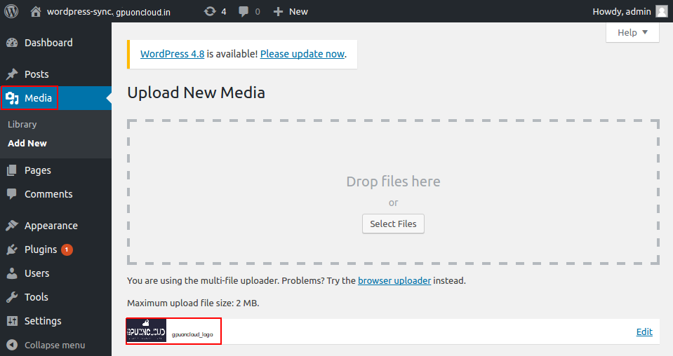 2. Once logged in, make some custom changes (e.g. upload images or other files, edit themes, add pages, etc).