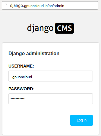 For entering, use the superuser credentials you’ve specified while creating your Django CMS application.