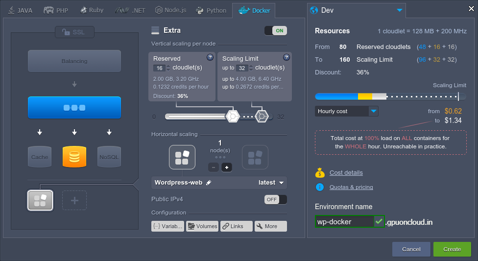 any Docker environment layer can be scaled horizontally with the Multi Nodes feature; moreover, you can configure this for being performed automatically based on incoming load or define to get the appropriate load alerts via email