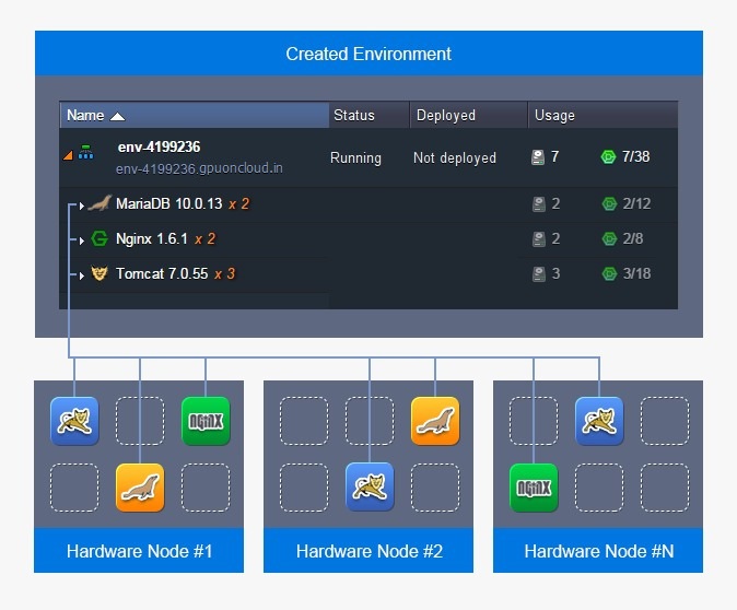 GPUonCLOUD allows you to automatically scale your projects horizontally, changing the number of web/application server nodes in your environment. All of the newly added nodes are created at different hardware servers, ensuring even more reliability and high-availability.