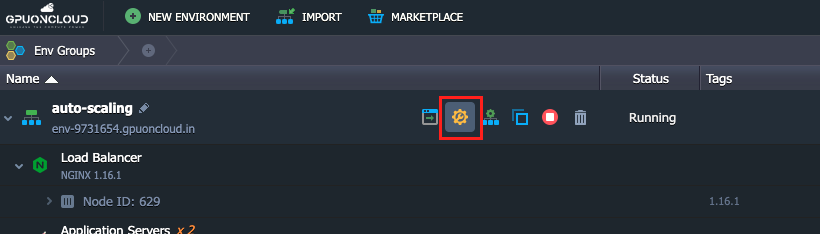 1. Click the Settings button for the desired environment.